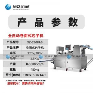 290IIAS卷面式包子機(jī),可生產(chǎn)各種不同餡料的包子、各式包餡食品,如豆沙包、南瓜餅、肉包、小籠包、水晶包等幾十種包餡制品。適用于個(gè)體戶、食品廠、學(xué)校等單位食堂。可滿足不同客戶群體。免費(fèi)提供工藝技術(shù)。