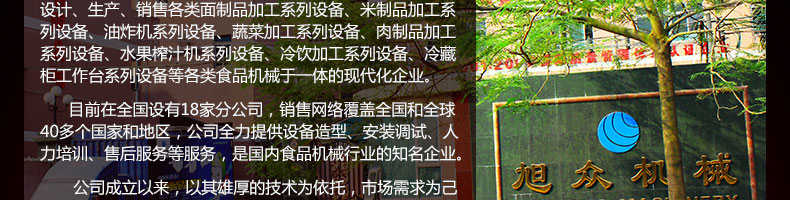 廣州旭眾食品機械有限公司是一家集科研開發,生產設計,營銷服務為一體的現代化生產企業。現代化生產車間,精湛制造技術,所產機械歷經市場重重考驗,不斷贏得海內外客戶的贊譽。