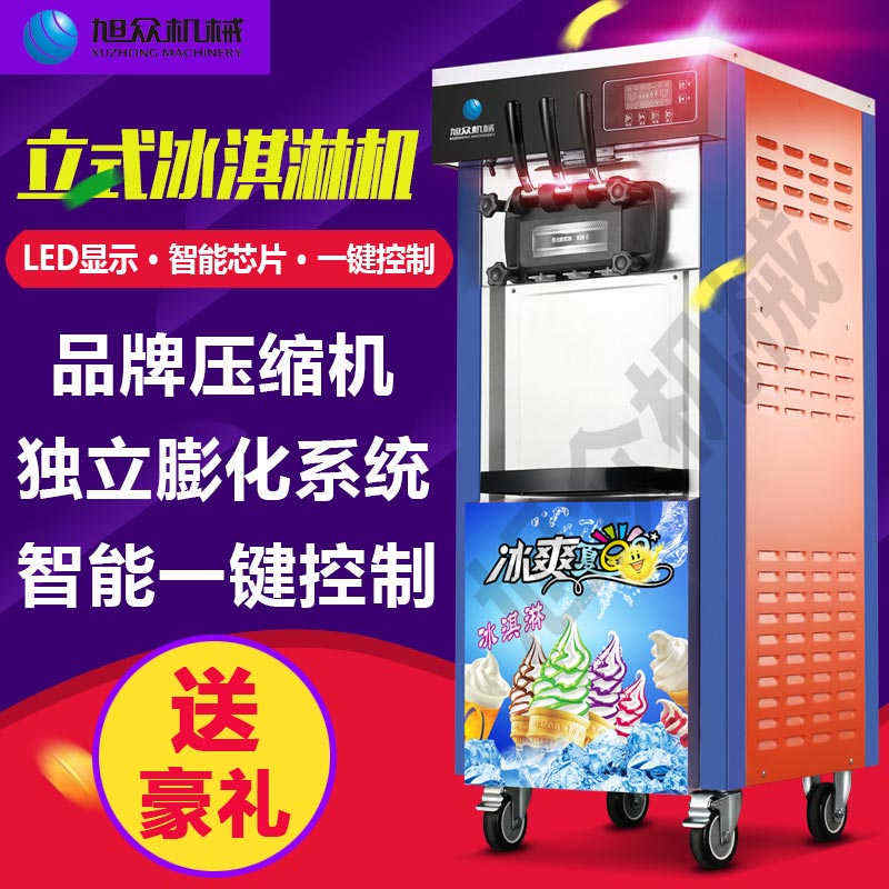 BQL-826立式冰淇淋機,1.選用國際牌壓縮機,輔以旭眾精湛工藝,大大縮短冰淇淋成型時間,高效節能;2.全新液晶智能觸控面板,簡單明了,多功能易操作;3.全新升級專業膨化泵,膨化率高,產量增加30%;4.一鍵清洗功能,省時方便;5.主要部件采用不銹鋼材質,時尚美觀,持久耐用;6.先進的機械攪拌系統,機器運行穩定可靠,低噪音,產品口感爽滑細嫩。