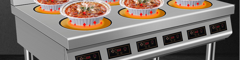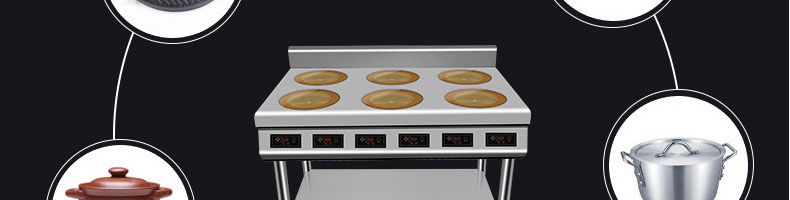 XZ-LBZL210圓頭六頭電陶爐,快餐外賣搶著買,一爐百烹快速出餐。煎炒燜煮煲等各樣花式,樣樣行,單頭3500W大火力實現快速出餐不等待做菜重要的就是火候,火力不足一切都是白搭。