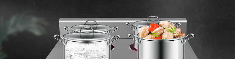 四頭柜式電磁爐,10檔調節,滿足各種烹飪。3500W火力十足,輕松選擇合適火力。同時工作互不干擾單獨磁爐控制面板,設置不同大小檔數,同時工作,互不干擾。