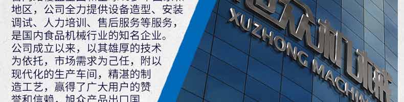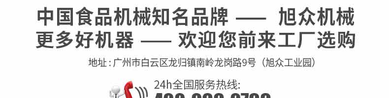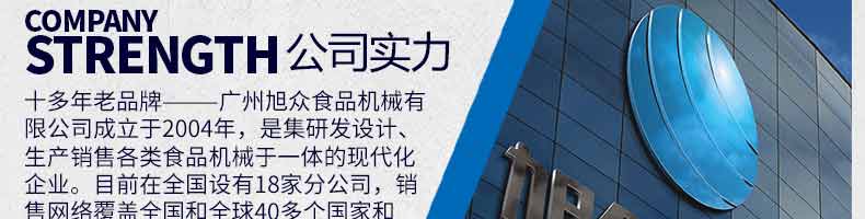 廣州旭眾食品機械有限公司是一家集科研開發,生產設計,營銷服務為一體的現代化生產企業。現代化生產車間,精湛制造技術,所產機械歷經市場重重考驗,不斷贏得海內外客戶的贊譽。