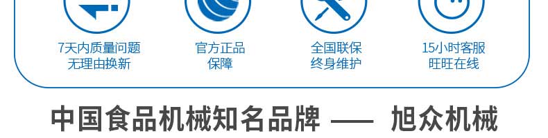 廣州旭眾食品機(jī)械有限公司是一家集科研開發(fā),生產(chǎn)設(shè)計,營銷服務(wù)為一體的現(xiàn)代化生產(chǎn)企業(yè)。現(xiàn)代化生產(chǎn)車間,精湛制造技術(shù),所產(chǎn)機(jī)械歷經(jīng)市場重重考驗(yàn),不斷贏得海內(nèi)外客戶的贊譽(yù)。