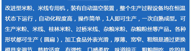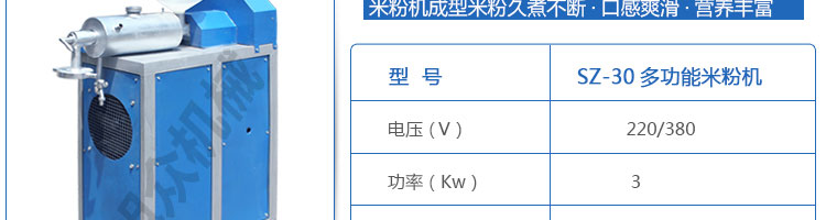 SZ-30米粉機,生產多樣性可生產米粉、米線、粉絲、粉條、、年糕、玉米面條、各種雜糧粉絲、各種面條、雜糧面條、彩色面條以及以紅薯、玉米、大豆、蠶豆等制成淀粉為原料的等多種食品而且每種食品厚薄、粗細等規格可根據需要任意調整。