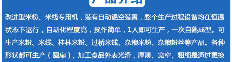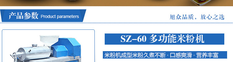 SZ-60多功能米粉機,生產多樣性可生產米粉、米線、粉絲、粉條、、年糕、玉米面條、各種雜糧粉絲、各種面條、雜糧面條、彩色面條以及以紅薯、玉米、大豆、蠶豆等制成淀粉為原料的等多種食品而且每種食品厚薄、粗細等規格可根據需要任意調整。