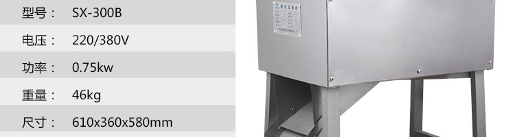SX300B 臥式切肉機(jī),臥式切肉機(jī)均采用雙滾刀結(jié)構(gòu),有臥式和立式兩種型式。各種款式切肉機(jī)原動力和刀梳、切肉部分的原理,結(jié)構(gòu)大致相同,都具有結(jié)構(gòu)緊湊,外形美觀、操作方便、效率高、耗電小、清潔保養(yǎng)容易、安全衛(wèi)生、切肉效果好等優(yōu)點(diǎn)。