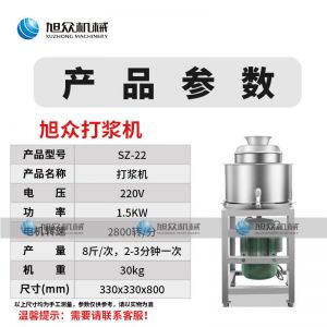 SZ-22快速打漿機,多功能打漿機用于打肉、配料、攪拌成漿,比手工打漿更精細,所產肉丸、魚丸彈性好,色澤潔白。創(chuàng)業(yè)好幫手快速多功能適應廚房各種需求。
