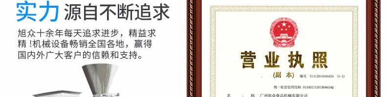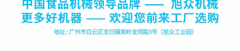 廣州旭眾食品機械有限公司是一家集科研開發,生產設計,營銷服務為一體的現代化生產企業。現代化生產車間,精湛制造技術,所產機械歷經市場重重考驗,不斷贏得海內外客戶的贊譽。