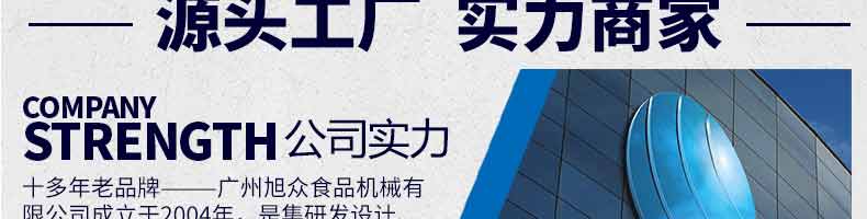 廣州旭眾食品機械有限公司是一家集科研開發,生產設計,營銷服務為一體的現代化生產企業。現代化生產車間,精湛制造技術,所產機械歷經市場重重考驗,不斷贏得海內外客戶的贊譽。