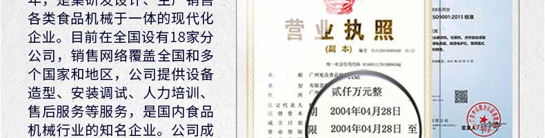 廣州旭眾食品機(jī)械有限公司是一家集科研開發(fā),生產(chǎn)設(shè)計(jì),營(yíng)銷服務(wù)為一體的現(xiàn)代化生產(chǎn)企業(yè)?,F(xiàn)代化生產(chǎn)車間,精湛制造技術(shù),所產(chǎn)機(jī)械歷經(jīng)市場(chǎng)重重考驗(yàn),不斷贏得海內(nèi)外客戶的贊譽(yù)。